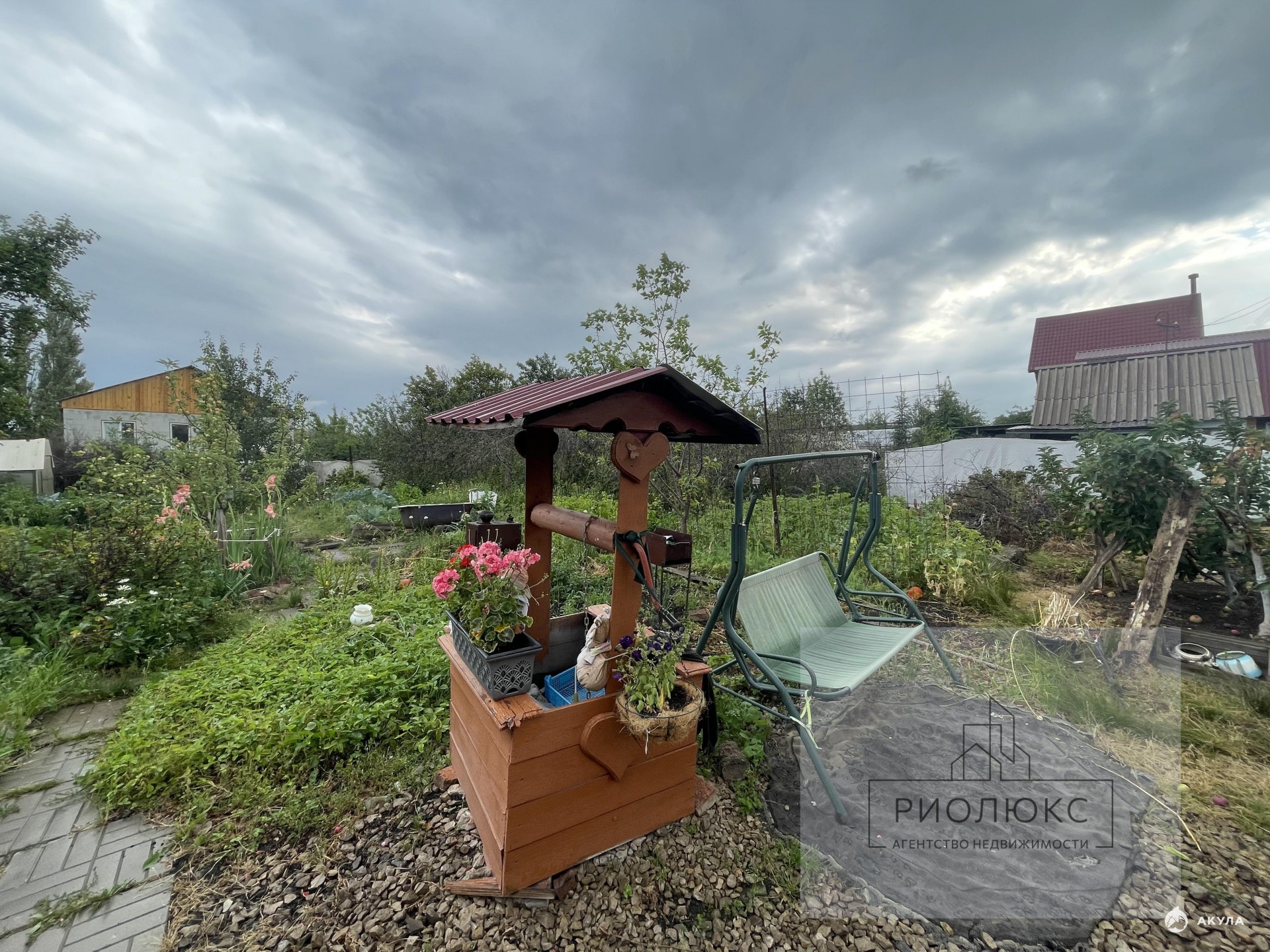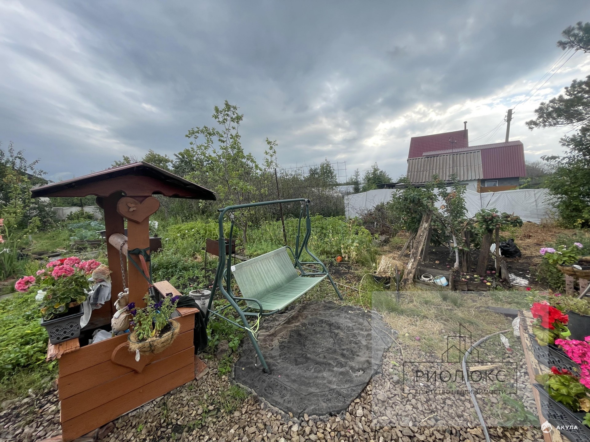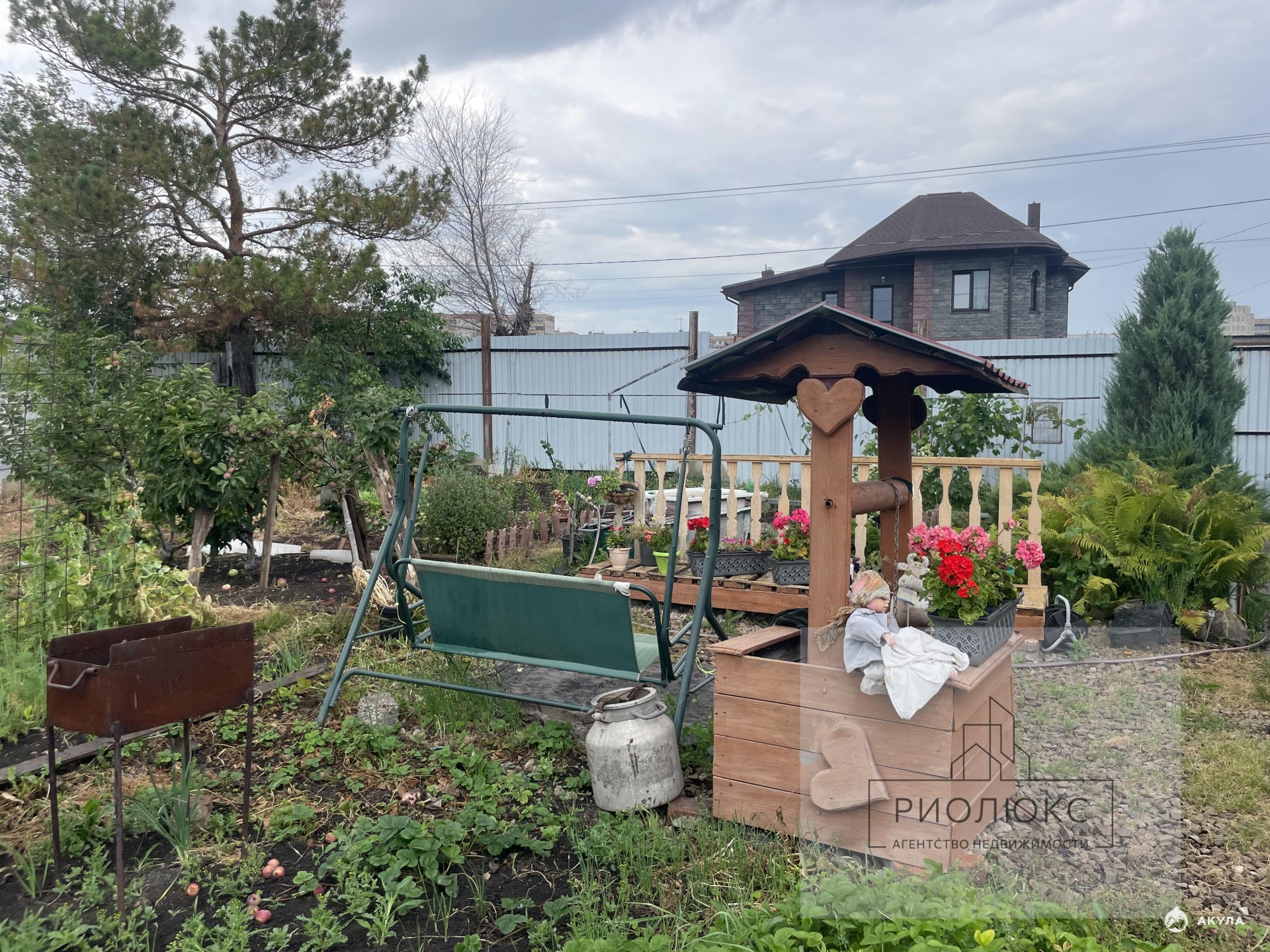 * Плодоносящие и декоративные деревья и кустарники, цветы, садовый декор, качели, мангал.