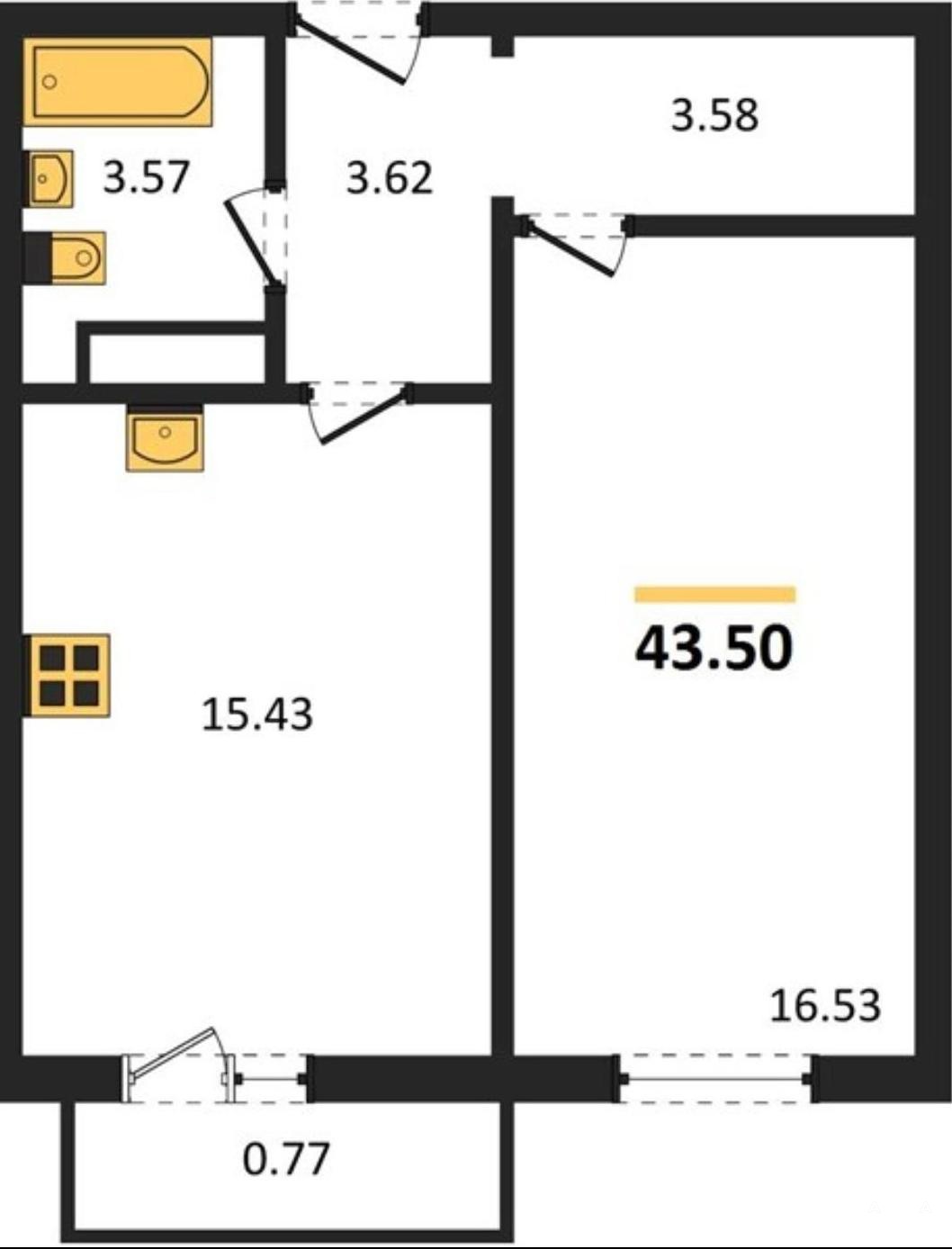 -Площадь санузла(совмещенный): 3.57 кв.м.
