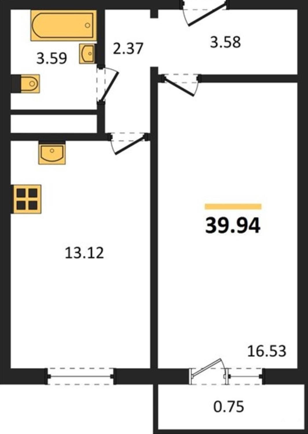 ОБЩАЯ ПЛОЩАДЬ КВАРТИРЫ СОСТАВЛЯЕТ 39.94 КВ.М.!