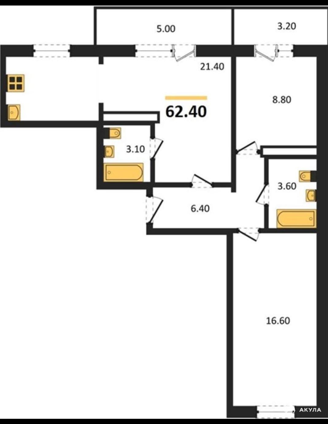 - 62 м²