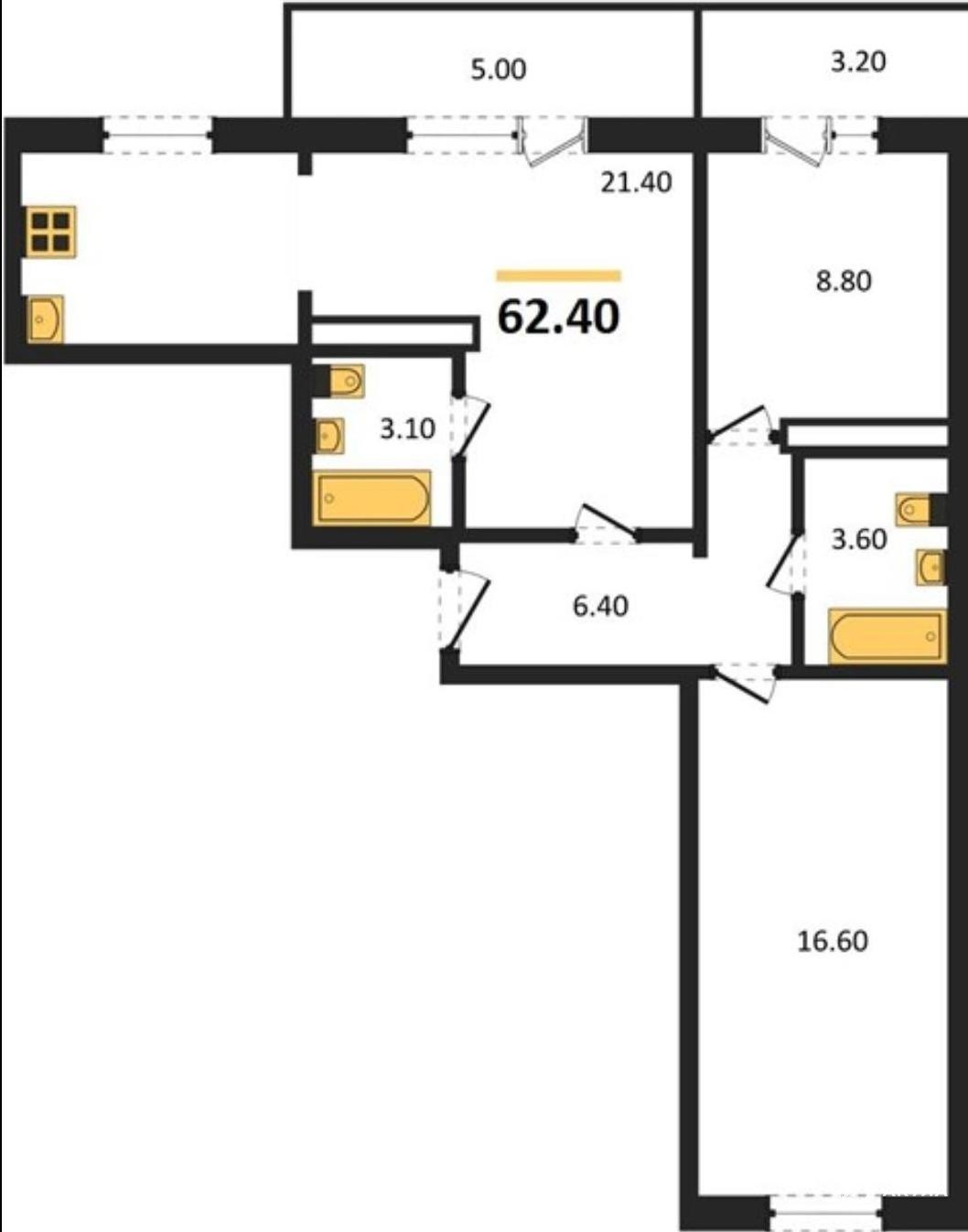 -Санузел(совмещенный): 3.10 кв.м. и 3.60 кв.м.