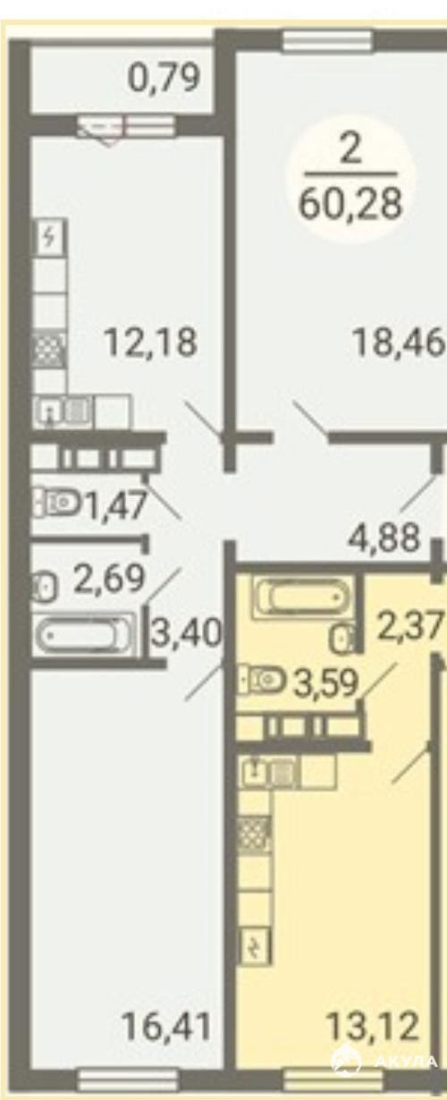 -Кухня: 12.18 кв.м.