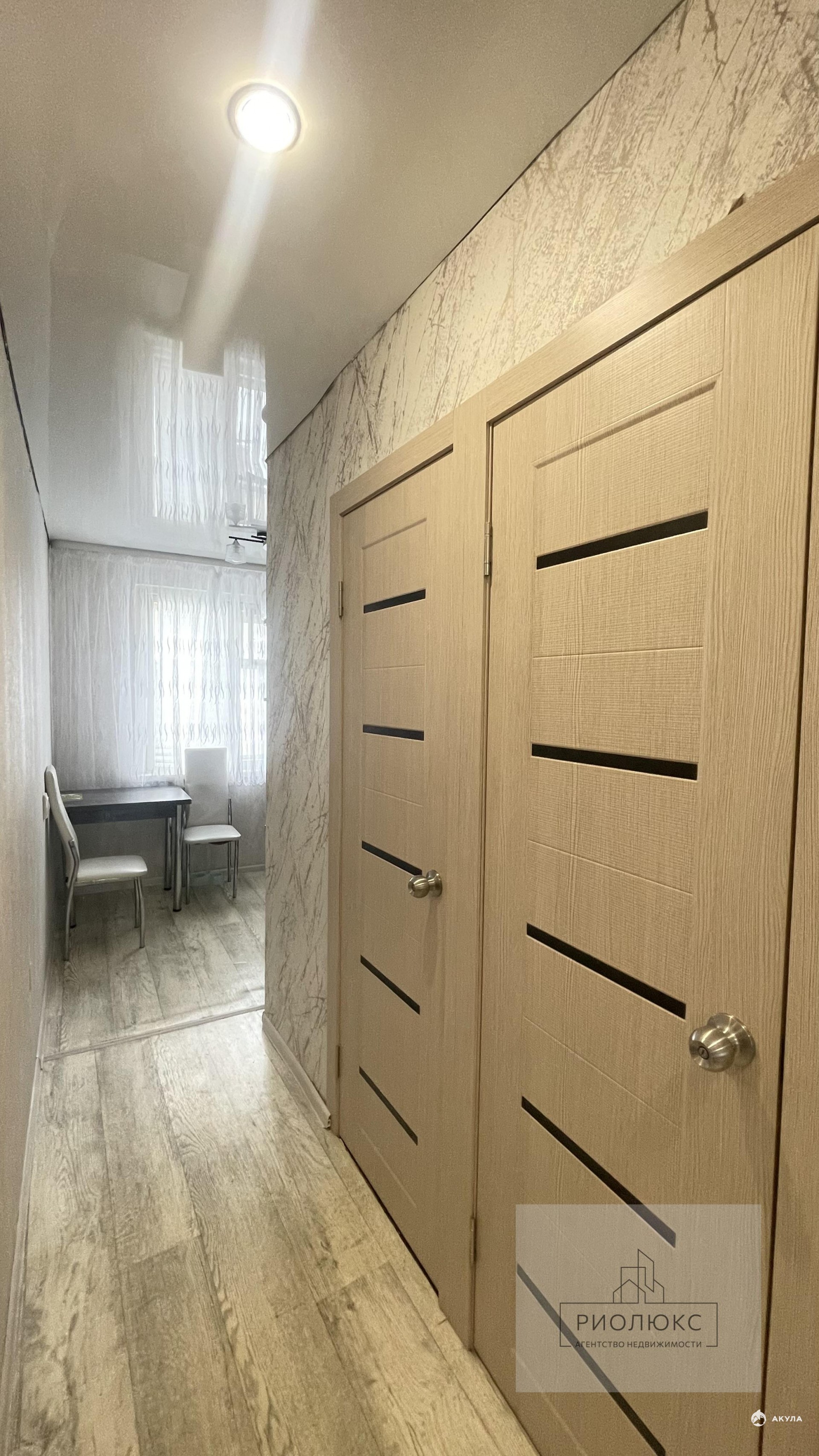 Квартира расположена на 5-м этаже 5-этажного дома. Общая площадь — 44 кв. м, жилая — 30 кв. м, площадь кухни — 6 кв. м.