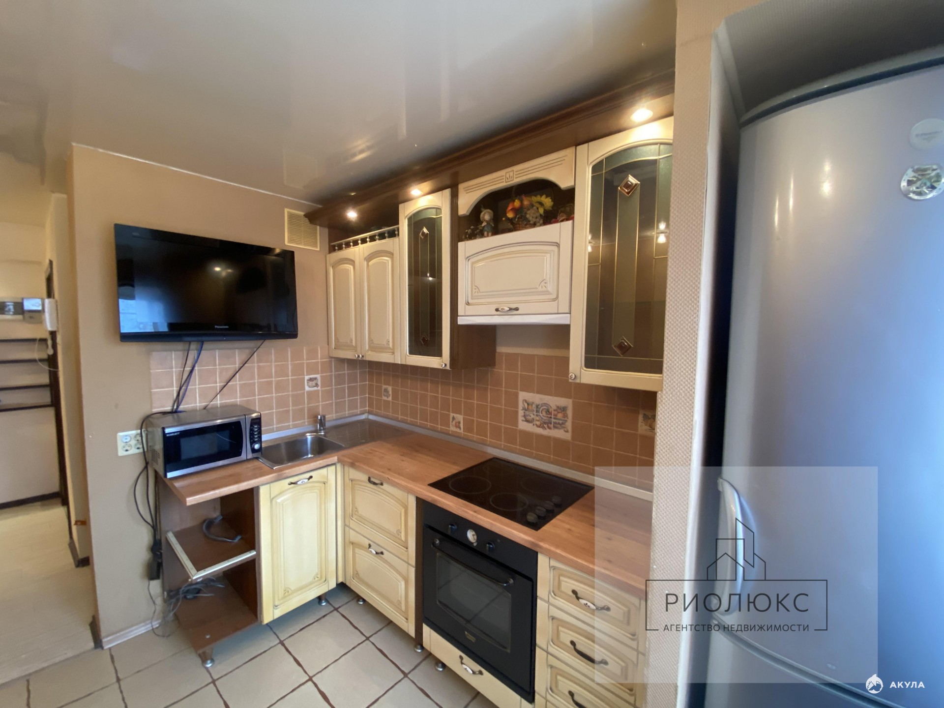 Мебель и техника: Кухонный гарнитур, вся техника (холодильник, водонагреватель, телевизоры в каждой комнате и кухне, варочная поверхность, духовой шкаф;